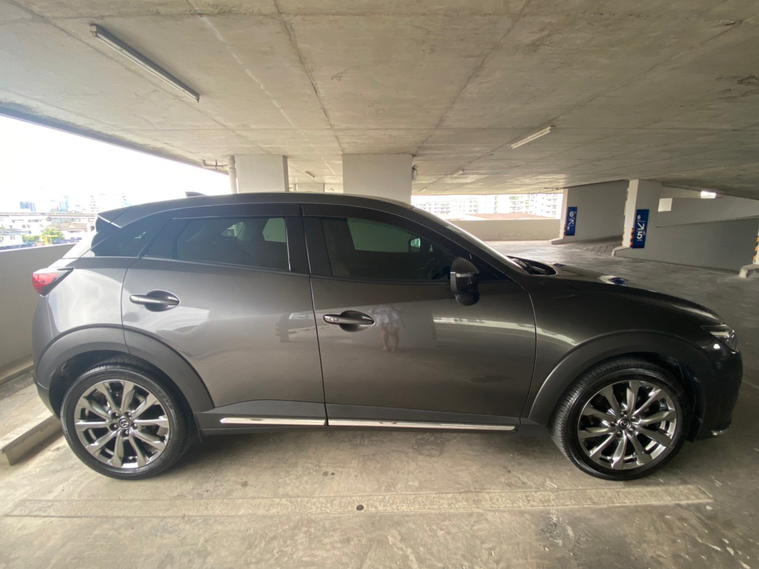 Mazda CX-3 Exclusive MODS Limited Edition ปี 2019 สีเทา machine grey metallic หลังคา sunroof เปิด-ปิดด้วยระบบไฟฟ้า ไมล์ 19,xxx km #Mazda care เช็คระยะฟรี (5ปี) : 2562-2567 #ประกันชั้นหนึ่ง : เมษายน 2565-เมษายน 2566 ราคาอย่างเป็นทางการ : 2.0 Exclusive MODS 1,110,000 บาท Engine เครื่องยนต์ : เบนซิน 2.0 Skyactiv-G เครื่องยนต์เบนซิน Skyactiv-G 2.0 ลิตร 1,997 ซีซี. Dual S-VT Direct Injection กำลังสูงสุด 156 แรงม้า ที่ 6,000 รอบ/นาที จับคู่กับเกียร์อัตโนมัติ 6 จังหวะ พร้อม Manual Mode ขับเคลื่อน 2 ล้อ รองรับน้ำมันสูงสุด E85 เบาะนั่งคนขับ ปรับด้วยไฟฟ้า 8 ทิศทาง ล้ออัลลอย ขนาด 18 นิ้ว สีพิเศษ Dark Silver รองรับ Apple CarPlay / Android Auto