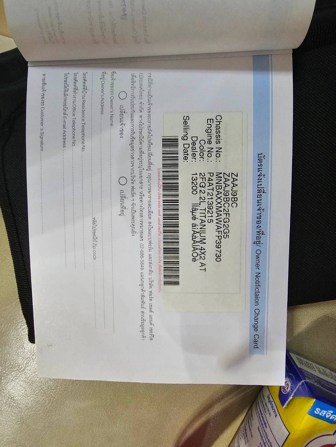 รถปลอดภาระมีเล่มแล้ว ไม่มีชนหนักถ้ามียินดีคืนเงิน รถใช้เองมือเดียวสภาพสวย ยางรถเพิ่งเปลี่ยน ประกันหมด ธ.ค Titanium 2.2 พอดีต้องไปทำงานต่างประเทศ เช็คศูนย์ตลอดมีเล่มการันตีผู้ซื้อสบายใจได้ การันตีอะไหล่แท้ทุกชิ้น ไมค์ 194600 กุญแจมี2ดอก ภายในเป็นเบาะหนังแท้