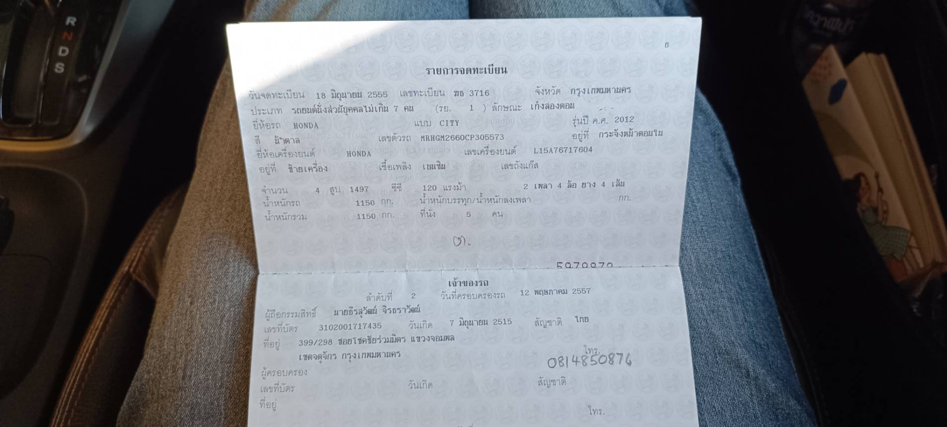 ขาย Honda CITY 1.5 SV i-VTEC สีช็อคโกแล็ต ปี 2012 รุ่นท๊อป มือเดียว ไม่เคยชนหนัก ใช้มาประมาณ 180,000 กิโลเมตร เช็คระยะกับศูนย์ตลอด มีคู่มือเช็คระยะ ราคา 200,000 ราคาต่อรองได้ นัดดูรถ 081-4850876 089-4440135 เจ้าของขายเอง