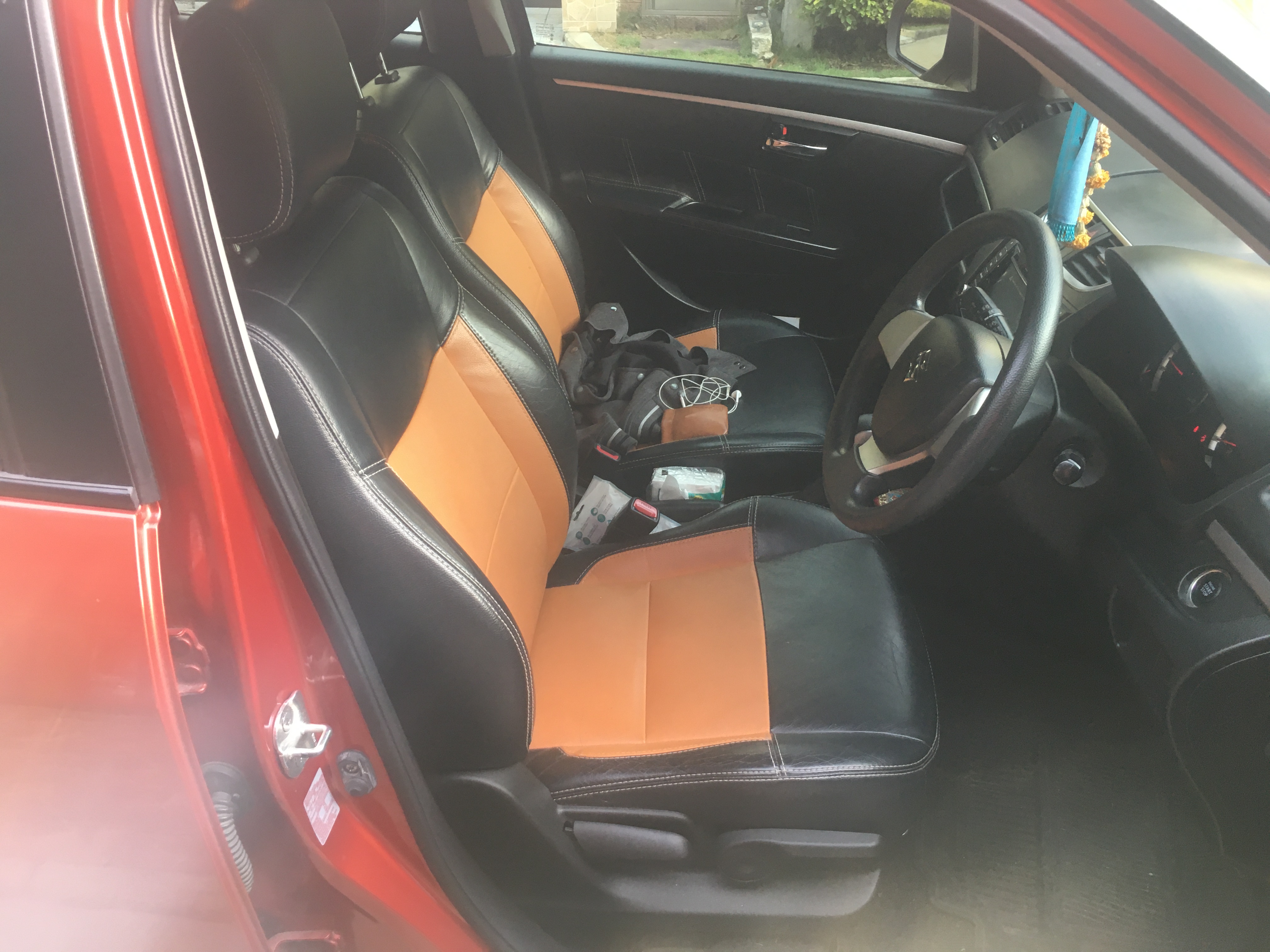 รถ Suzuki Swift 1.25AT ปี 2013 สีส้ม ตกแต่งภายในเป็นเบาะหนัง 2โทน, Navigator ติดสเกิร์ตรอบคัน แม็ก 16" พร้อมประกันชั้น 1 สภาพรถดี