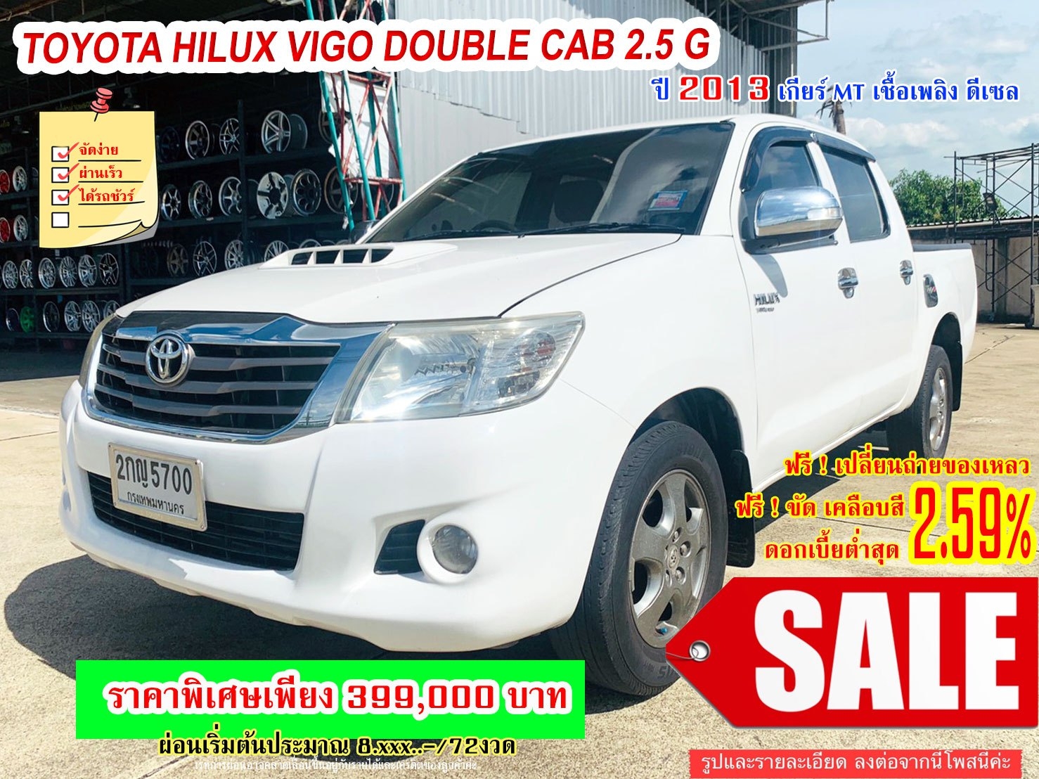 #TOYOTA HILUX #VIGO DOUBLE CAB 2.5 G ปี 2013 เกียร์ MT สี ขาว ❌❌❌ขายแค่399,000.-บาท❌❌❌